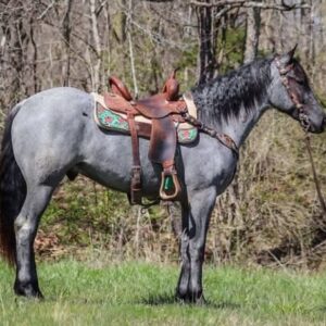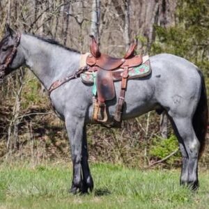 Introducing our 7-year-old Quarter Horse gelding, a true blue roan with a captivating appearance and a versatile skill set. Standing at 15.2 hands, he combines strength with agility, making him suitable for various equestrian activities.